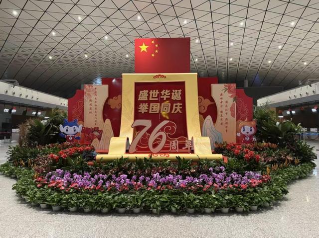 金秋送爽,丹桂飘香。为热烈庆祝中华人民共和国成立76周年,喜迎中秋传统佳节,营造喜庆祥和、文明和谐的节日氛围,长春机场对1号、2号航站楼进行装扮,以一场别开生面的视觉盛宴深情献礼祖国,为旅客献上诚挚的节日祝福。